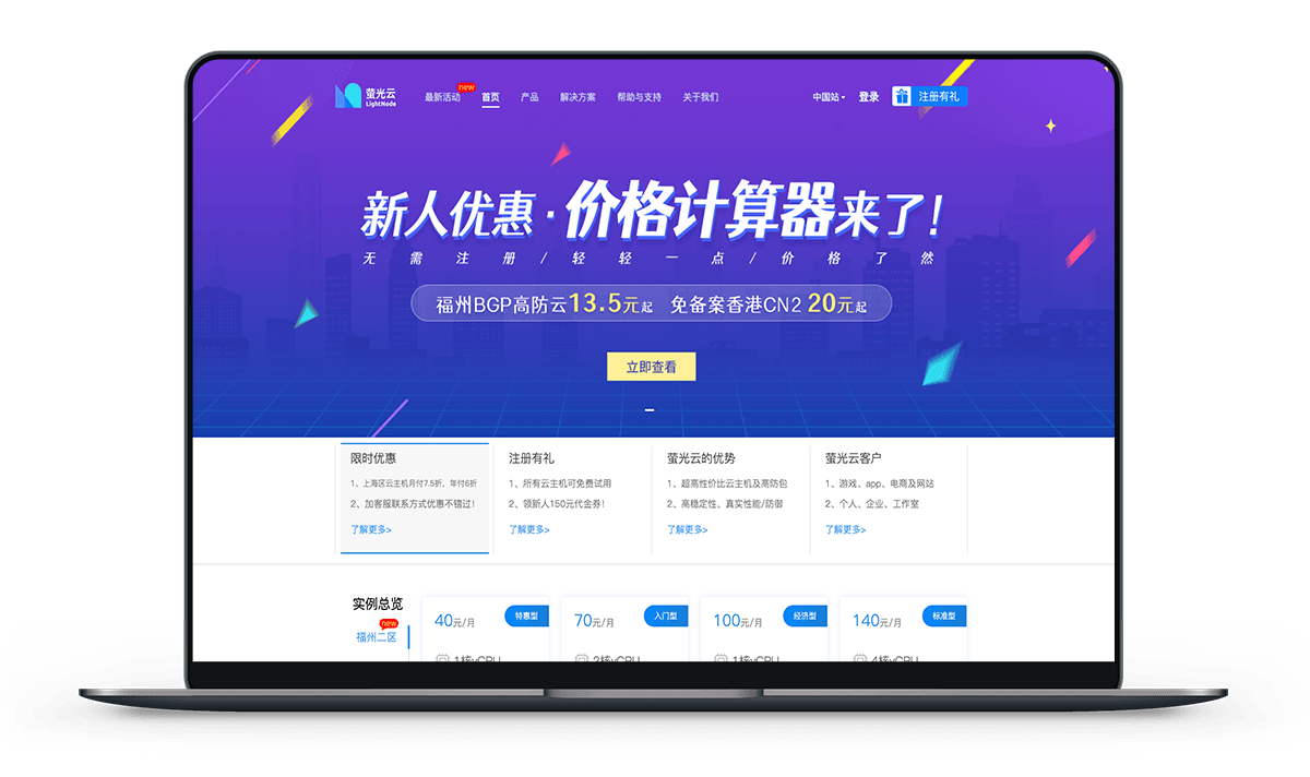萤光云是来自国内的IDC商家,起成立于2002年从事高防云服务器销售。目前国内节点有福州、上海、北京、台湾、香港CN2,海外有华盛顿、河内、曼谷等。